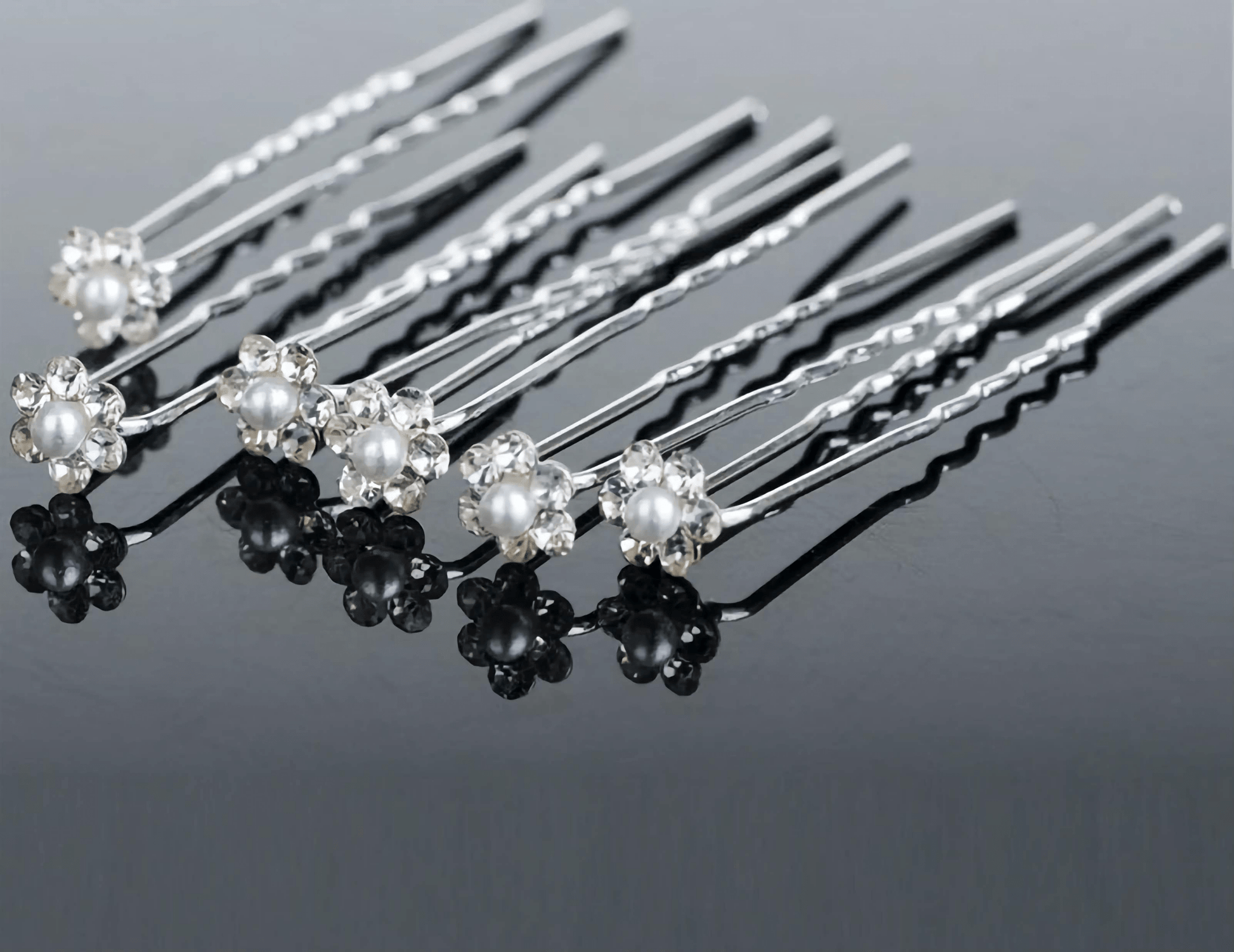 These pretty crystal diamante pins feature a pearl surrounded with sparkly diamante crystals. included is 10 hair pins , which are suitable for a bride, bridesmaid or flower girl.