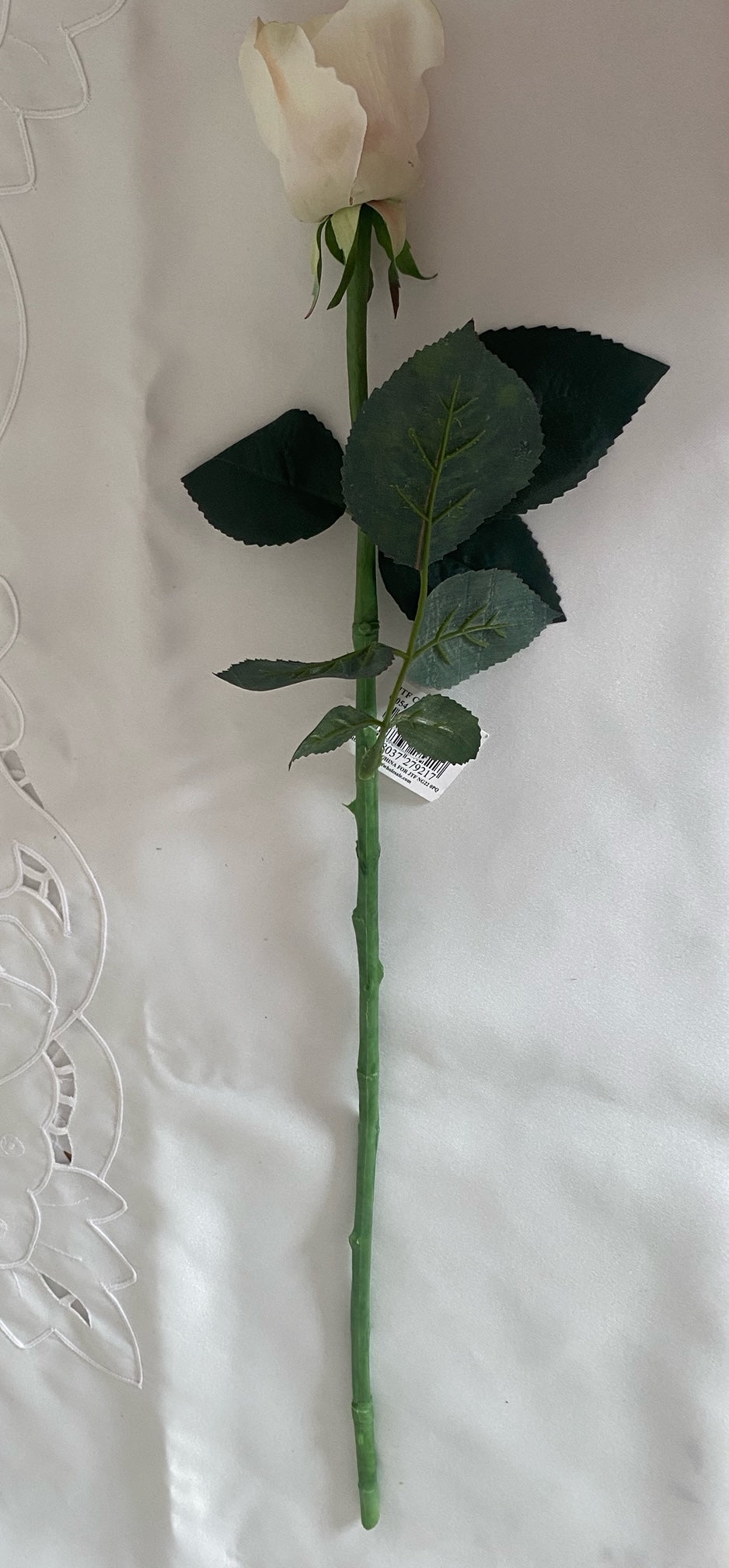 artificial small cream rose (off white), a beautiful traditional cream rose that looks & feels realistic.  the flower head is