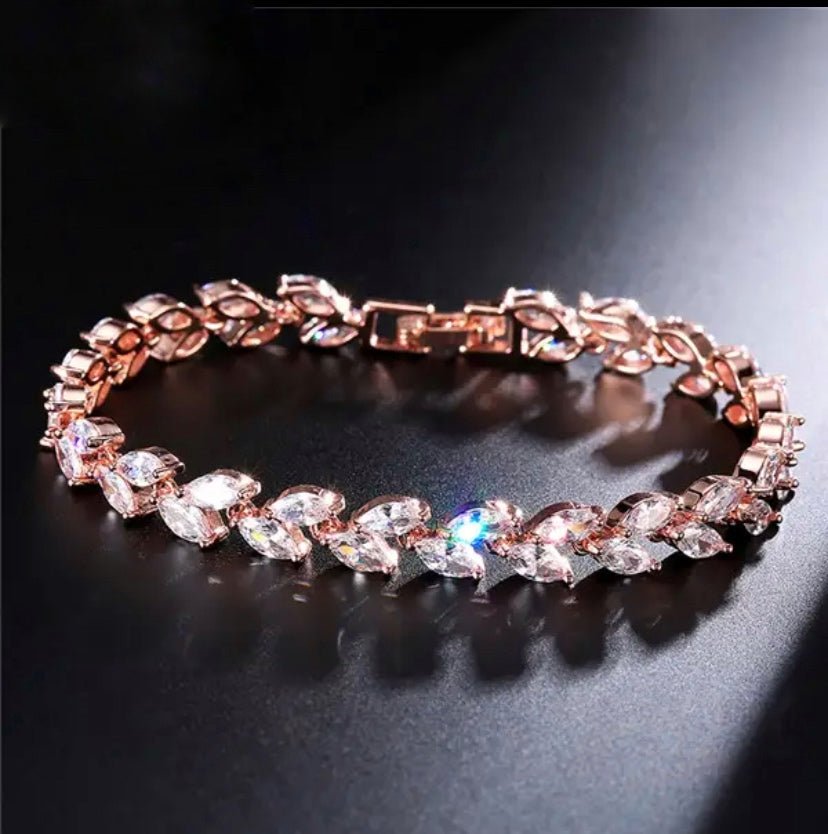 an exquisite bridal necklace set made using highest quality cubic zirconia aaa+ grade in a leaf design which beautifully compliments