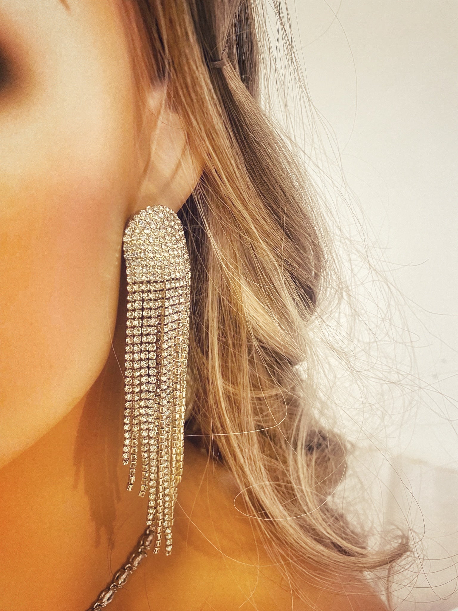 Crystal Fringe Earrings Gift for Her. Diamante Long Dangle Tassel Earrings Statement Fringe Earrings in Silver and Gold